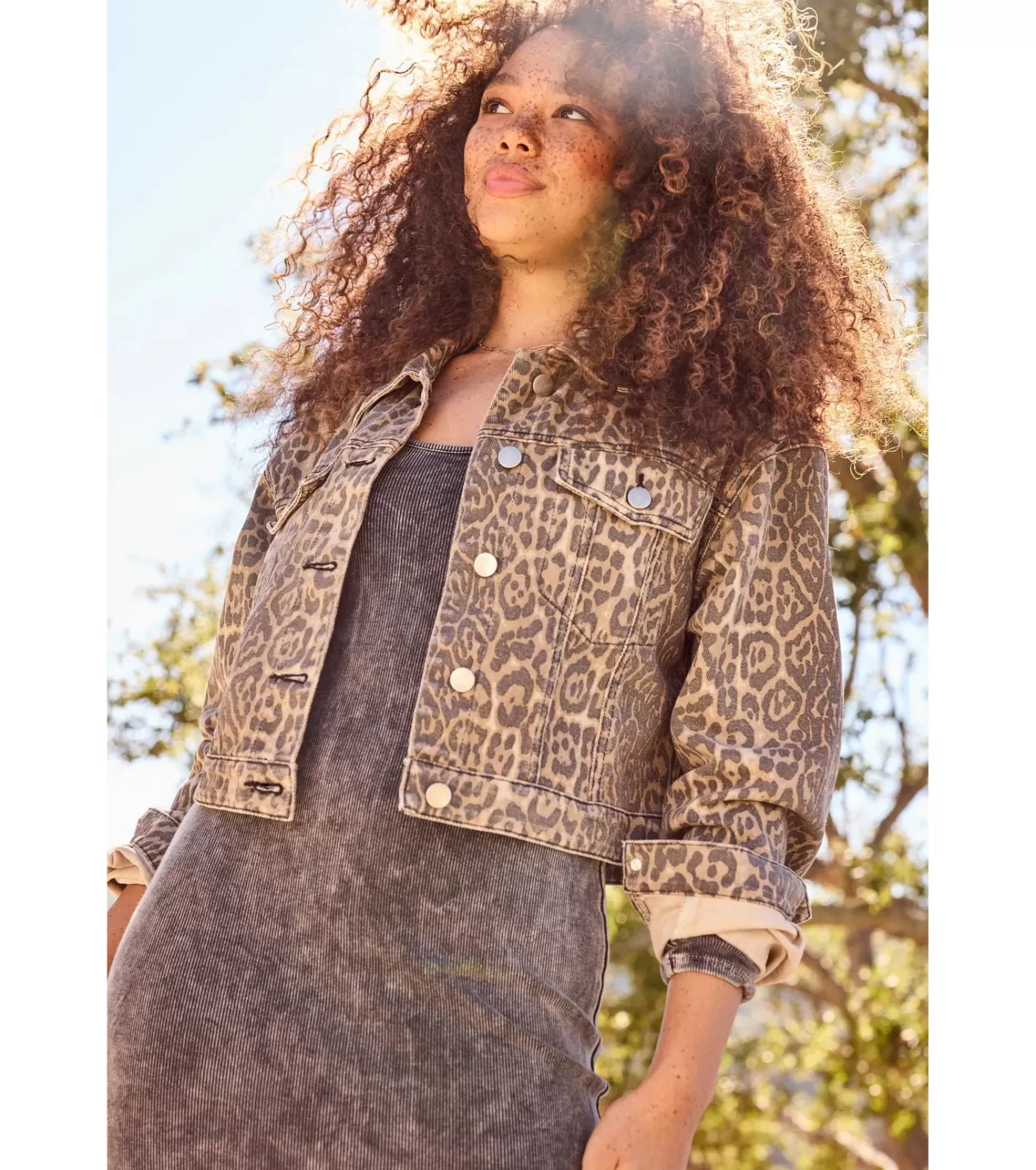 Windsor Level Up Print Denim Trucker Jacket LEOPARD Sale