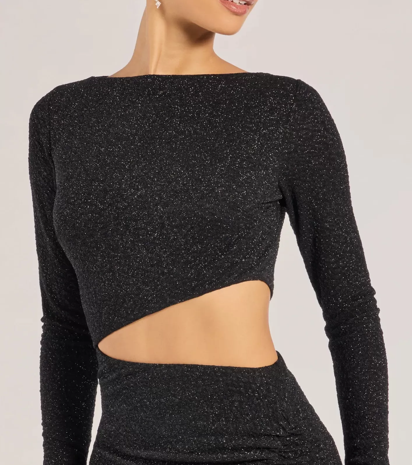 Windsor Brynn Long Sleeve Glitter Cutout Mermaid Dress BLACK Cheap