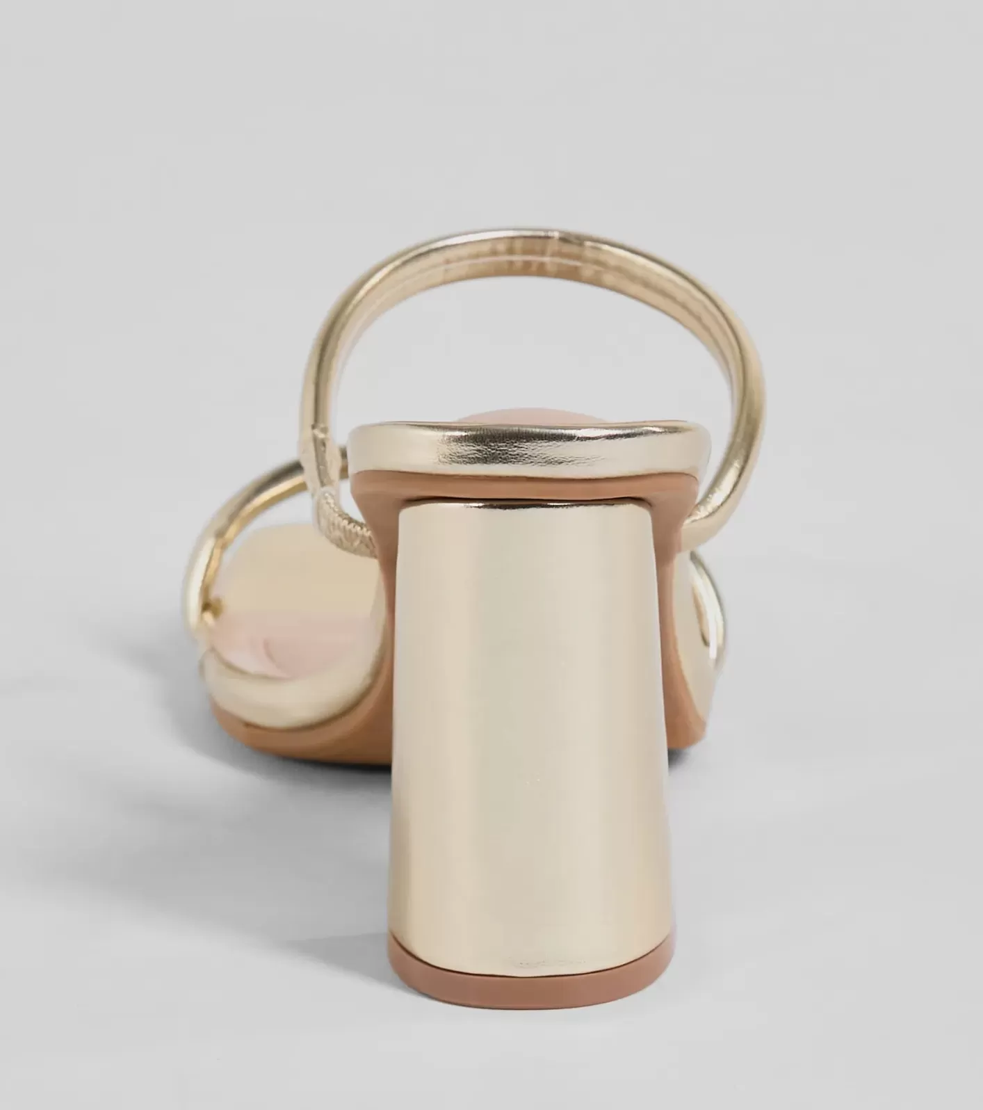 Windsor Day To Night Strappy Faux Leather Block Heels GOLD Fashion