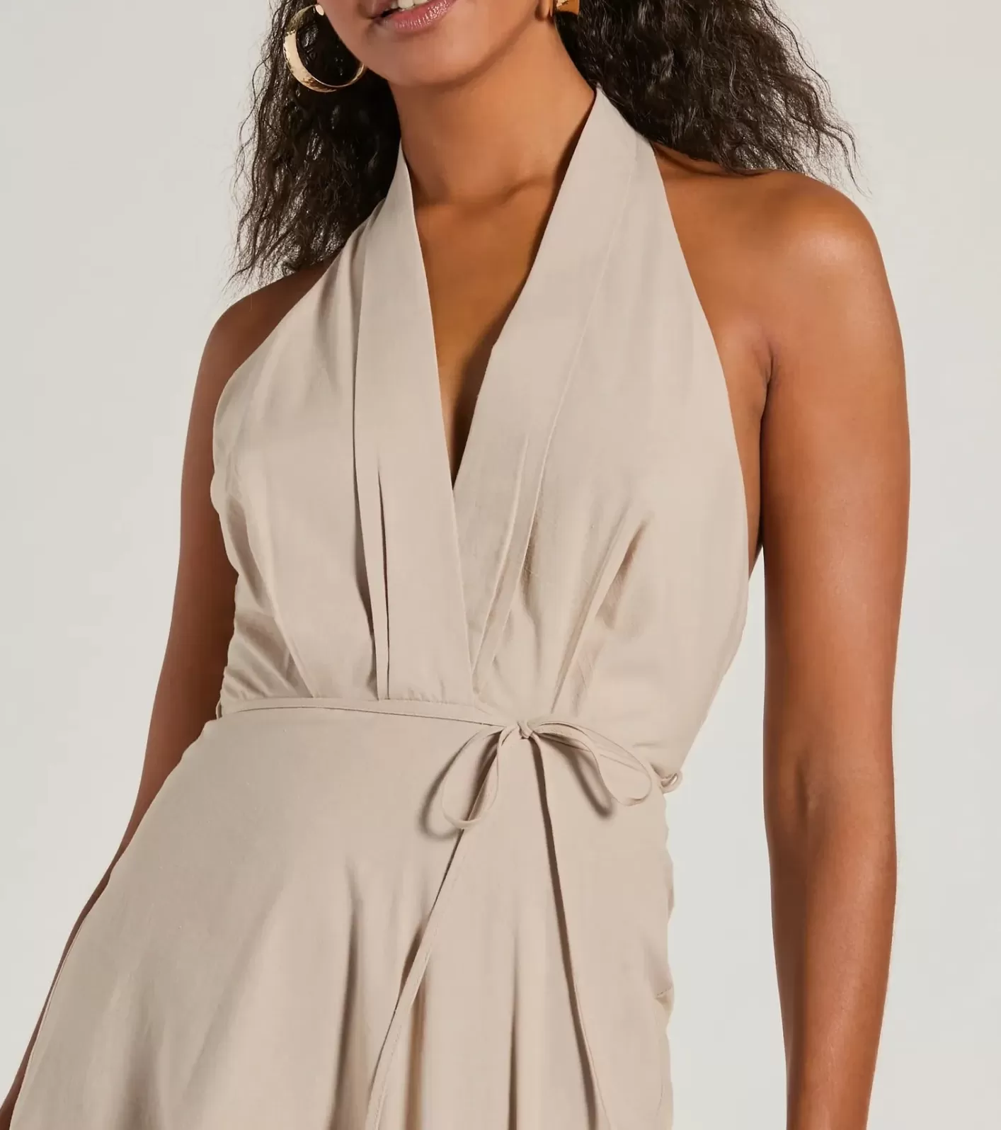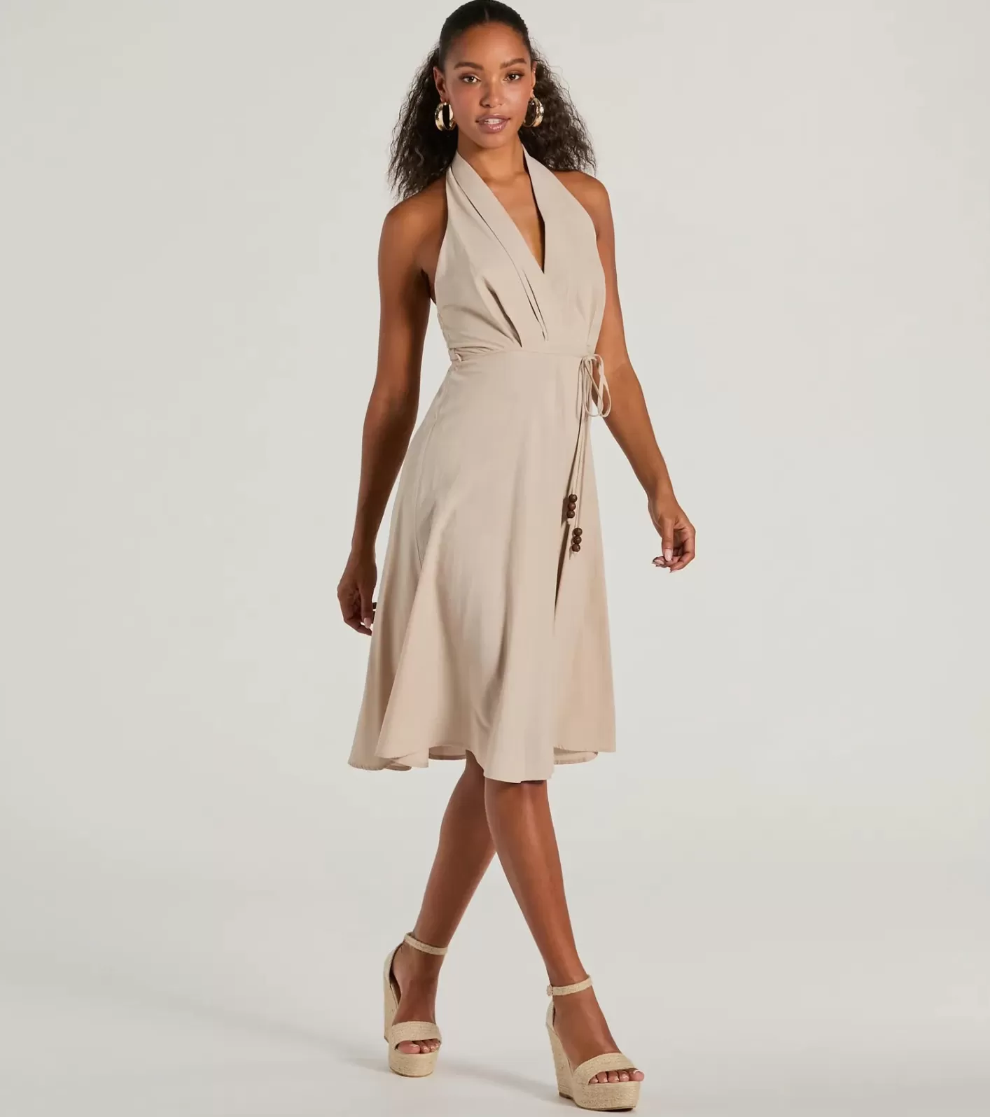Windsor Delightful Charm Halter A-Line Midi Dress NATURAL Best Sale