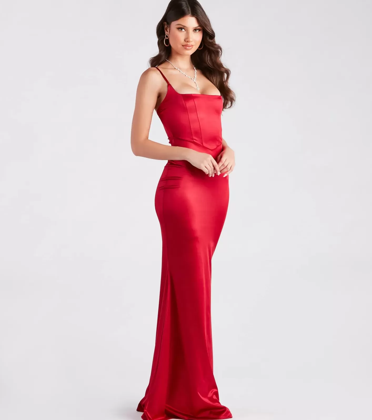 Windsor Erin Formal Satin Mermaid Long Dress RED Store