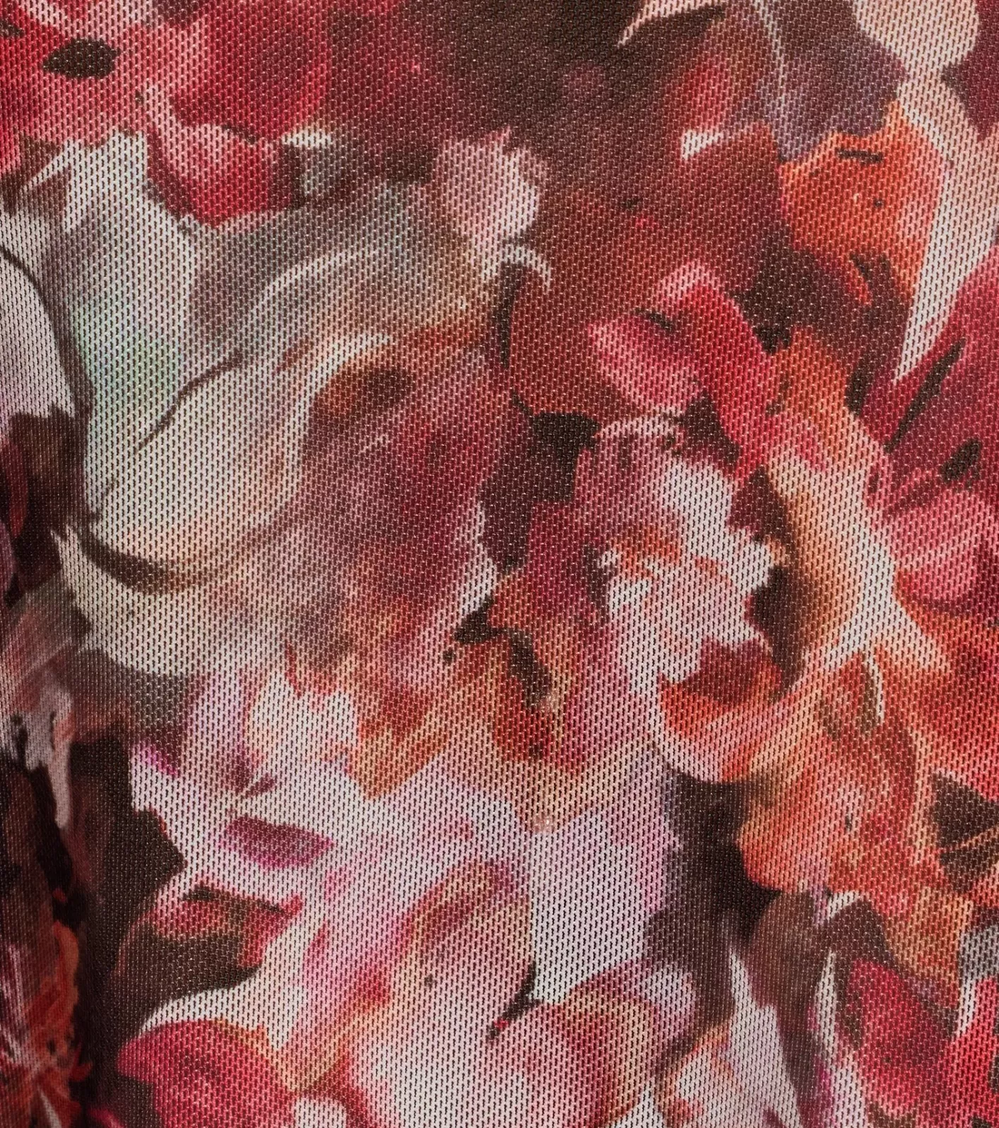 FitFeaturesSheer mesh fabric with top knit lining, plenty of stretchAbstract floral printSleeveless V-neckline, sheer la…