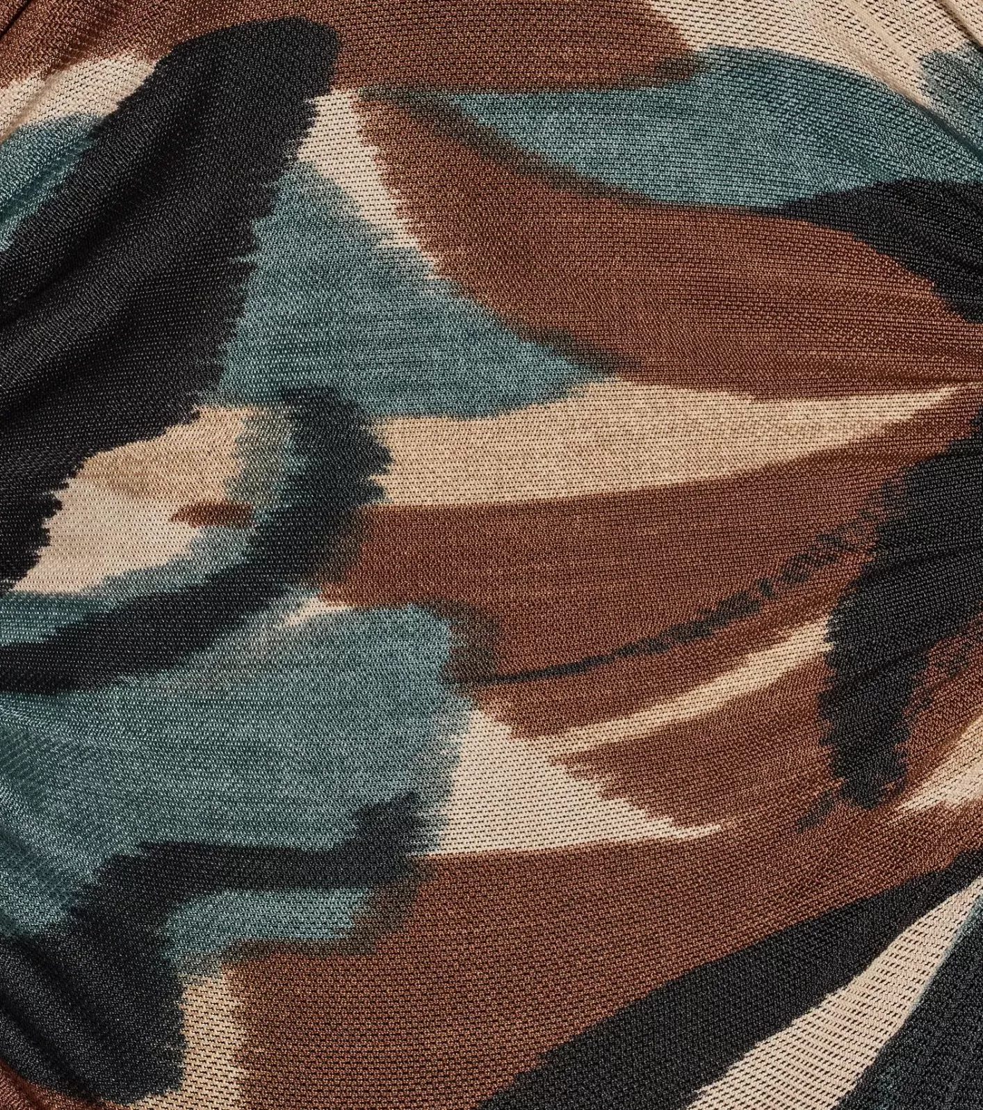 If you love to be noticed, you'll be a stylish sensation in this abstract mini dress out on the town! Featuring a flattering and adjustable tie at the halter V-neckline, a ruched bodycon silhouette, and a playful mini-length hem, this dress is designed to make you feel confident and chic. Complete the look in high heels and earrings.FitFeaturesAbstract print, mesh fabric, sewn-in knit liningHalter V-neckline with adjustable tieRuched bodycon fitRuns true to size